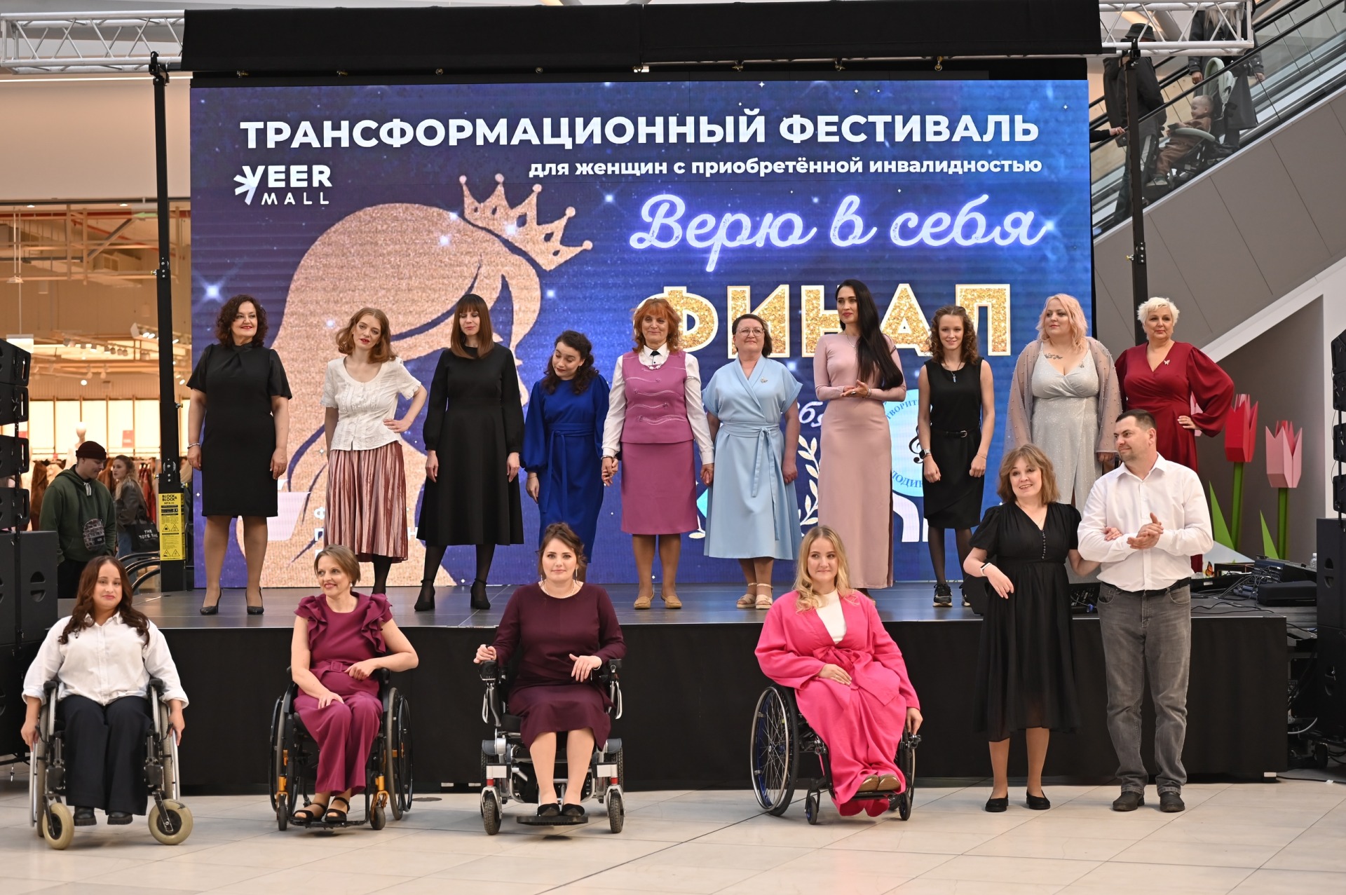 Проект "Верю в себя" включил множество мероприятий для женщин с приобретённой инвалидностью, охватывающих такие области как красота, имидж, стиль, визаж, личный бренд, финансовая грамотность и ораторское мастерство, чтобы масштабно осветить его деятельность. В начале мы организовали открытие фестиваля в центре реабилитации инвалидов и провели мастер-класс с прогулкам с собакой-поводырем. Финальным мероприятием стал яркий показ в торговом центре Вермол, где женщины продемонстрировали свои творческие способности, дважды вышли на сцену в платьях, предоставленных партнёрами, и были награждены диадемами, дипломами и подарками, включая кружки с логотипом "Верю в себя". Во время проекта участницы также прошли фотосессии и познакомились с успешными людьми с инвалидностью в разных сферах, что вдохновило их и придало сил.